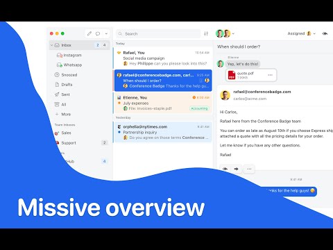 Missive is the ultimate team inbox and chat app for collaborating around email, SMS, WhatsApp, Messenger, live chat, custom, and Instagram.